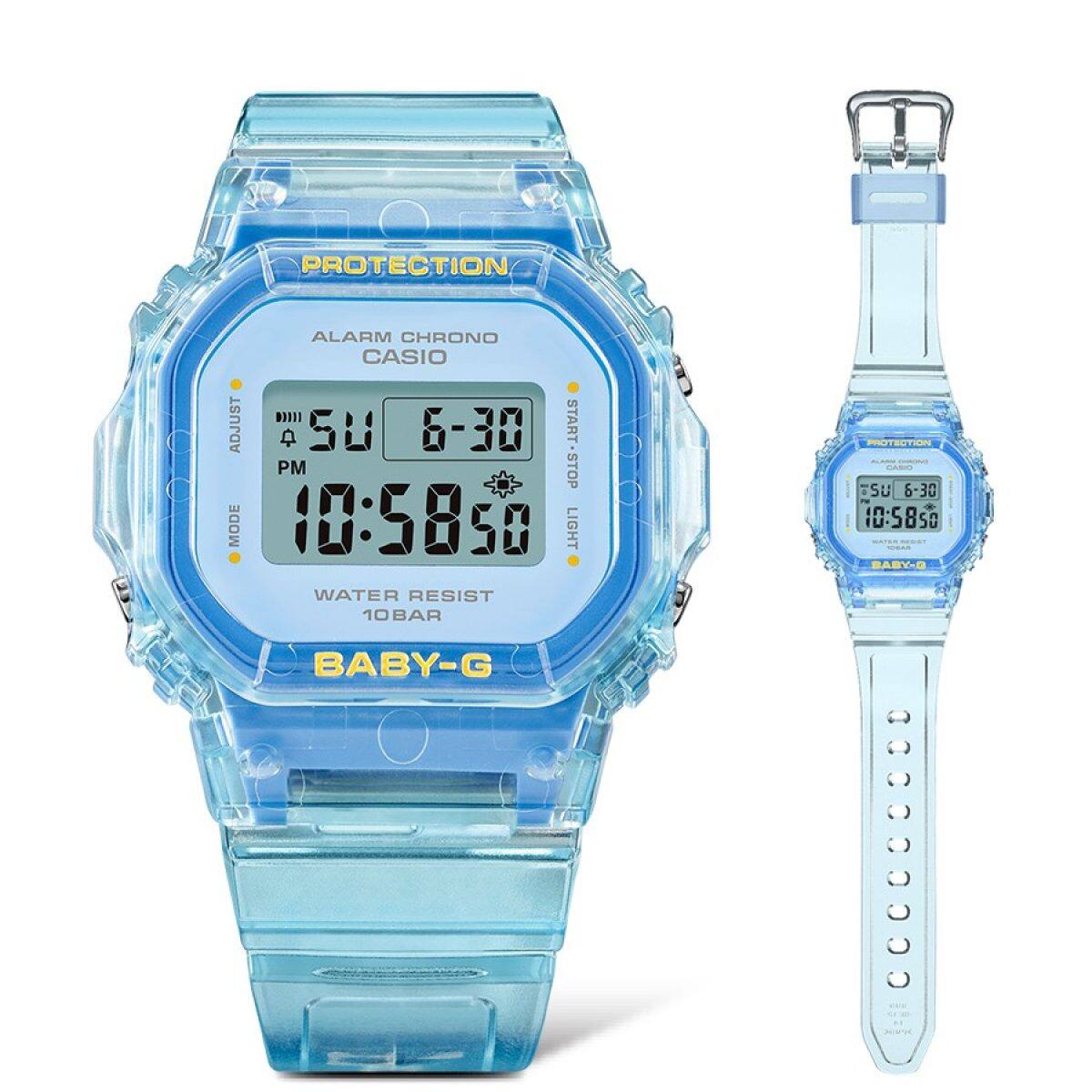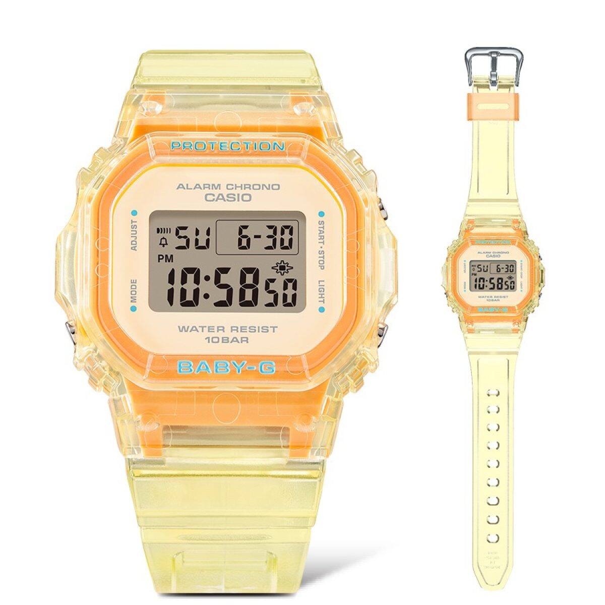 Vivid colours drawn from the Y2K fashion palette popular among youth are given the BABY-G treatment. Lustrous clear shades mingle with a matte finish in bright colours. Available in three colourways — blue, pink, and yellow — each lending a bright, sunny note to your summer wardrobe.