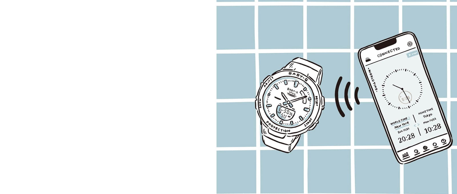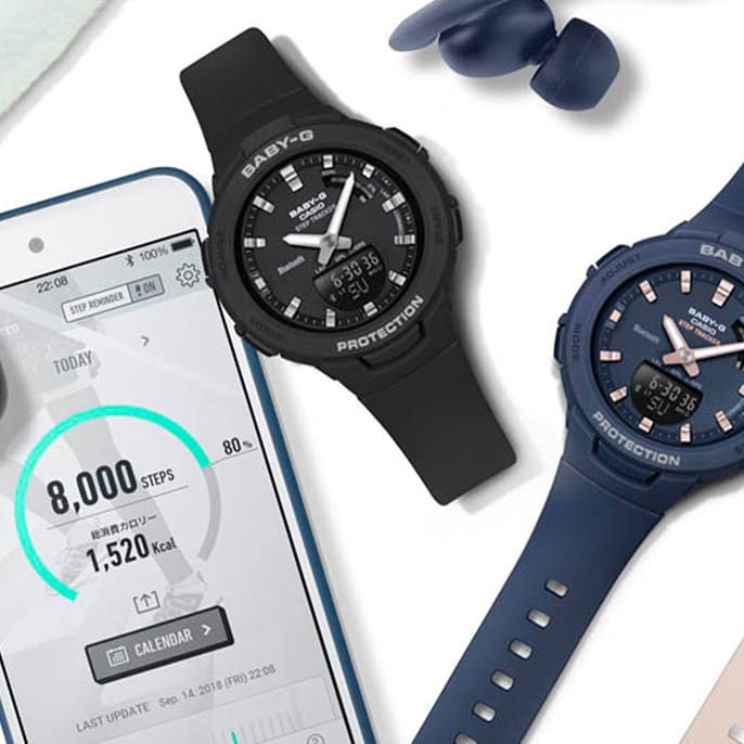 The Bluetooth watches from CASIO can be effortlessly connected to your smartphone and conveniently set your local time. Depending on the model, features such as fitness data tracking, step counting and analysis, or recording outdoor activities are integrated into our apps.