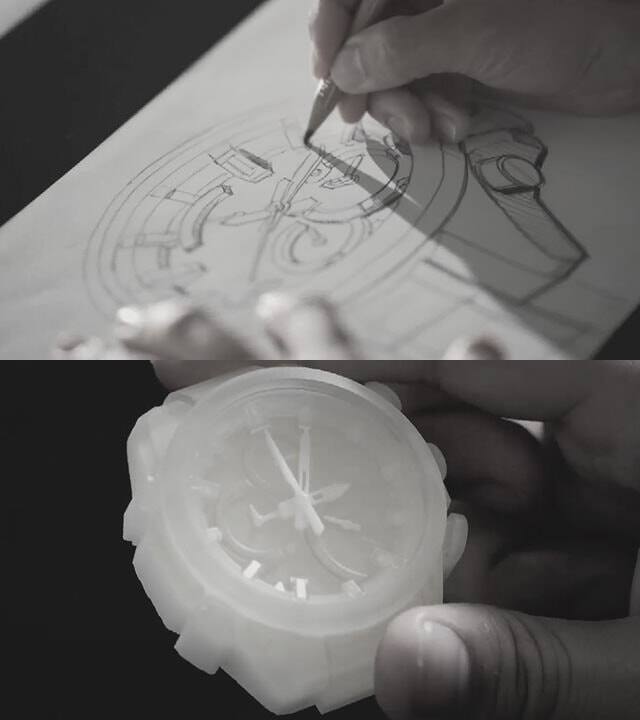 After forging and heat treatment of the stainless-steel material, precision machining is conducted to complete the boldly designed case form.