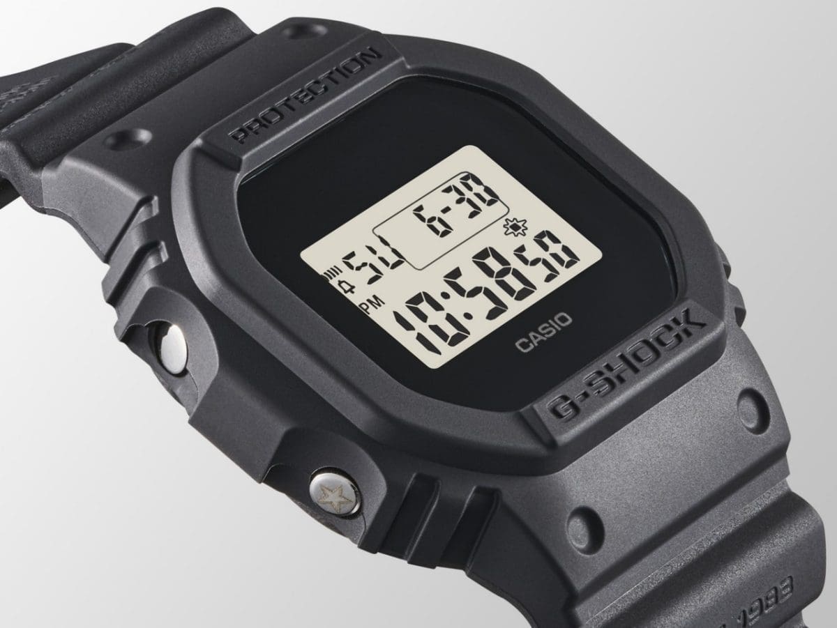 Made with recycled materials, the specially designed eco-friendly packaging is shaped like the G in G-SHOCK. Recycled paper and vegetable ink is used for the outer box. The DWE-5657RE, which comes with an interchangeable bezel, features a special box made with a pulp material called bagasse (sugar cane fibre), a material used as a substitute for wood, and is printed with vegetable ink.