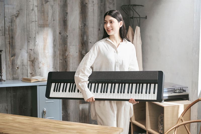 - ระบบตอบสนองตามการสัมผัส – เพิ่มน้ำหนักและเสียงเต็มอิ่มให้กับแต่ละโน้ตที่คุณเล่น