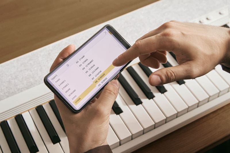 - แอป CASIO MUSIC SPACE ช่วยให้ง่ายต่อการจัดการการตั้งค่าต่างๆ เช่น การเปลี่ยนโทนเสียง จากอุปกรณ์สมาร์ทของคุณโดยตรงเพื่อประสบการณ์การเล่นที่ราบรื่น