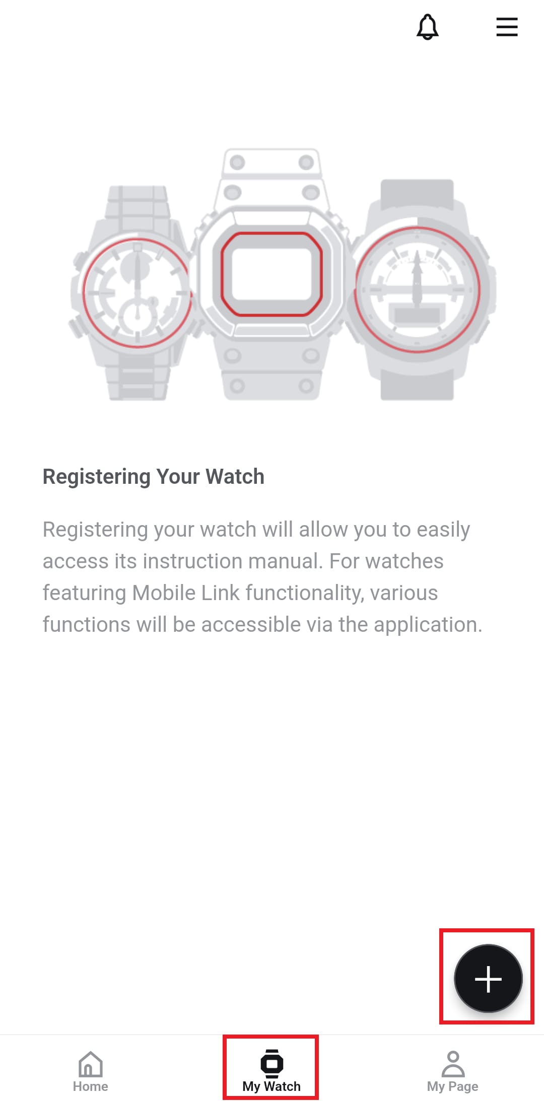 *หากข้อมูลการลงทะเบียนนาฬิกาถูกลบ ให้แตะปุ่ม "+" และเริ่มต้นลงทะเบียนนาฬิกาใหม่อีกครั้ง