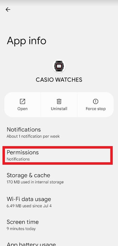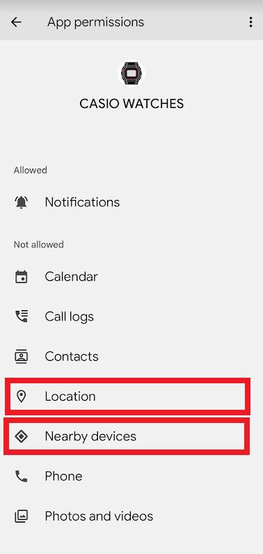 [การตั้งค่า] > [แอป] > [CASIO WATCHES] > [การอนุญาต]