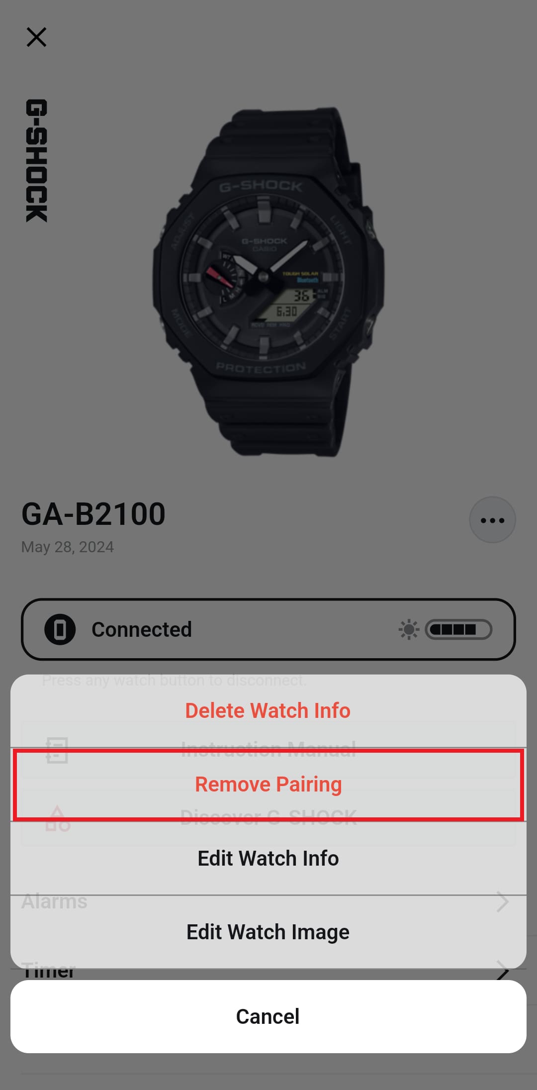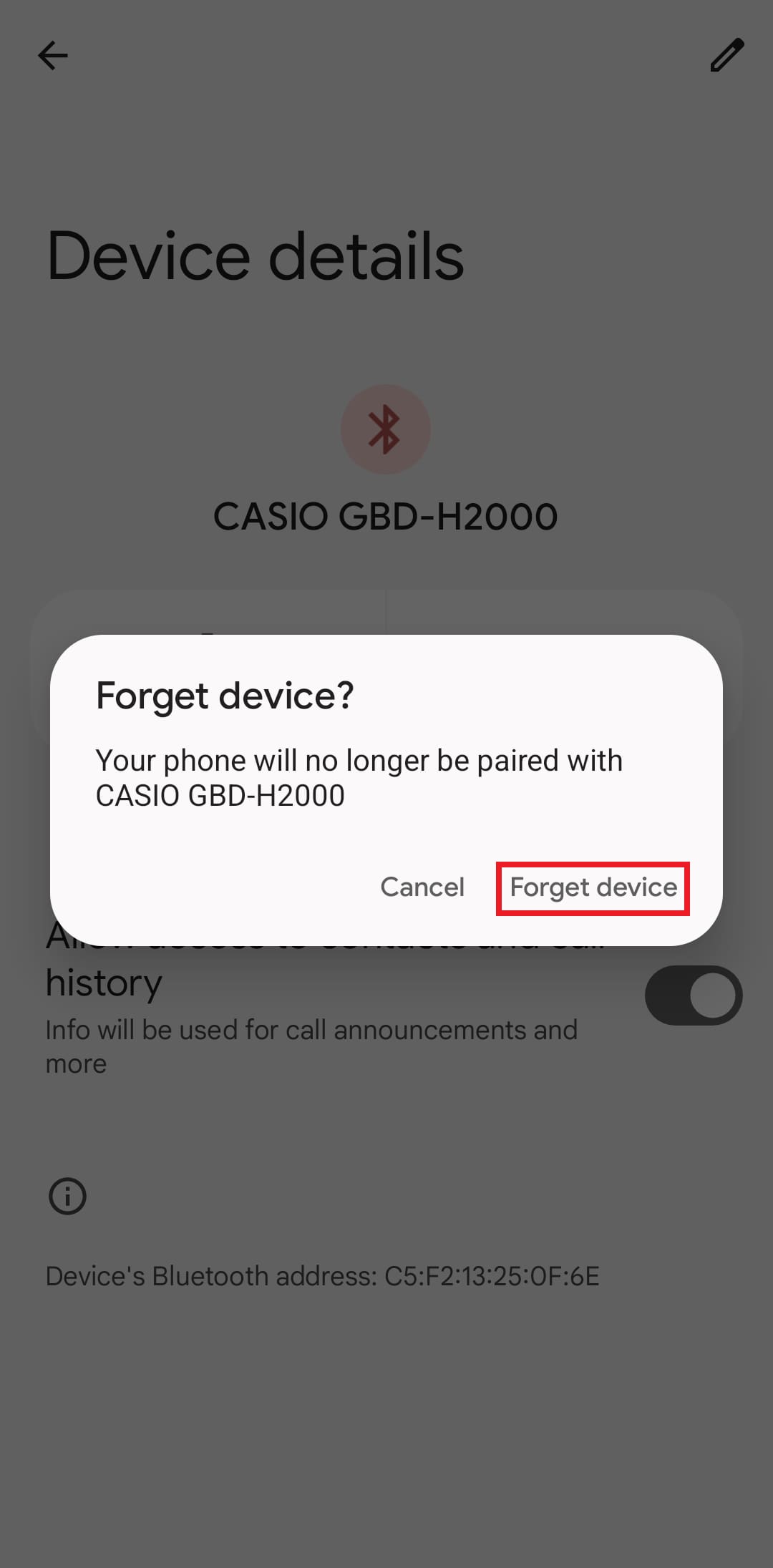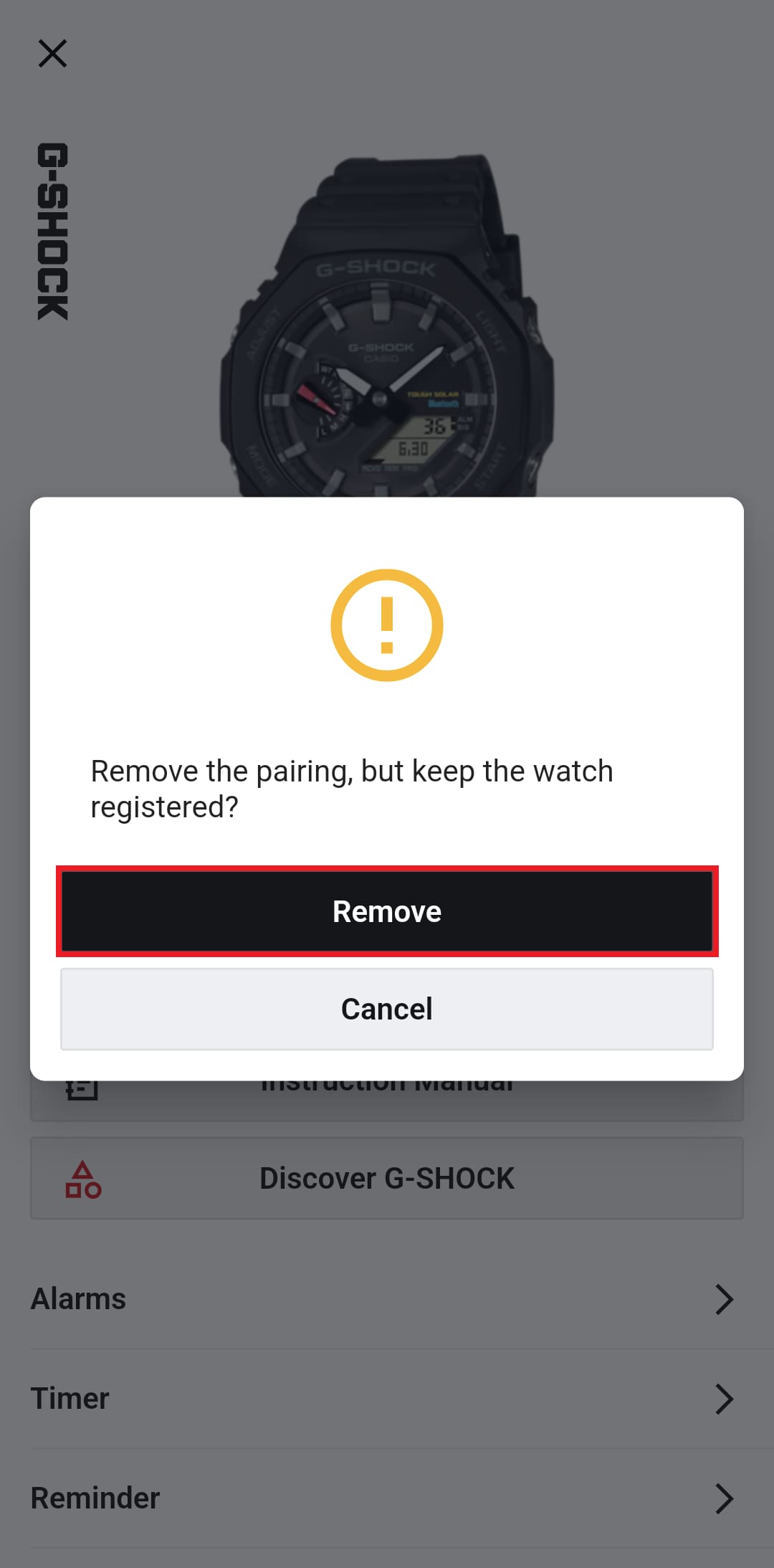 *สำหรับแอปนาฬิกา CASIO อื่นๆ คุณสามารถลบการจับคู่จากเมนูการตั้งค่าได้