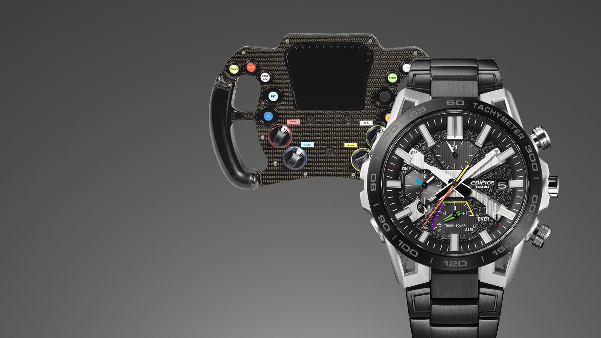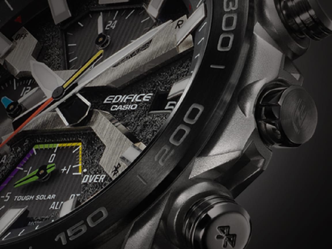 การรวมเทคโนโลยีขั้นสูงและการออกแบบของไลน์ผลิตภัณฑ์ EDIFICE มาพร้อมกับรูปทรงตัวเรือนแบบใหม่ที่ได้แรงบันดาลใจจากระบบกันสะเทือนบนรถแข่งฟอร์มูลา การบอกเวลาที่แม่นยำ และความสะดวกสบายที่มากขึ้นสำหรับการใช้งานเวลารอบโลกจากการเชื่อมต่อกับสมาร์ทโฟน นาฬิกาโครโนกราฟประสิทธิภาพสูงที่เกิดจากแนวคิด “มอเตอร์สปอร์ตที่แท้จริง”