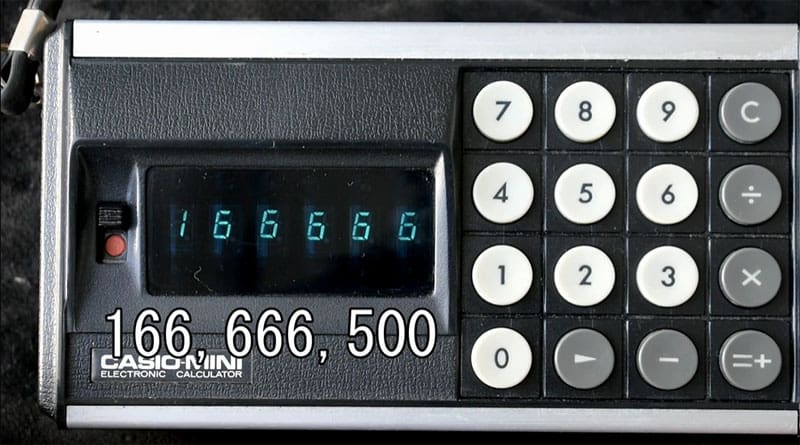 LSI sayısını bire düşürürsek [o dönemde hesap makinelerinde birden fazla LSI kullanılması yaygındı] ve dört haneli bir ekran kullanırsak, belki 10.000 yen hedefini tutturabileceğimizi düşündüm. Ancak bu durumda yalnızca binler basamağına kadar hesaplama yapılabilecekti ve bu da pek kimse için yeterli olmazdı. En azından yaklaşık bir milyon yene kadar hesaplama yapılabilmesi gerektiğini düşünerek altı haneli bir ekran kullanmaya karar verdik.
