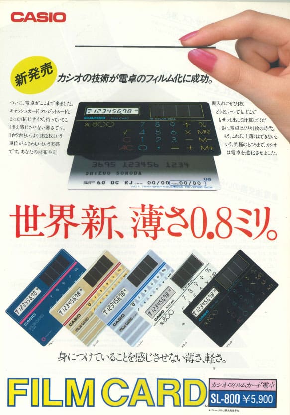 SL-800: 1983'de piyasaya sürüldü. Elektronik bileşenlerde film benzeri bir yaklaşım kullanılarak geliştirilen SL-800, yalnızca 0,8 mm kalınlığa ve 12 gram ağırlığa sahipti; bu da onu kredi kartı boyutunda dünyanın en ince hesap makinesi haline getirdi. Bu model, Japonya'nın hayal gücü ile teknik yetkinliğinin bir birleşimi olarak görülüyor ve taşınabilir hesap makinelerinin ulaştığı en üst nokta kabul ediliyordu.