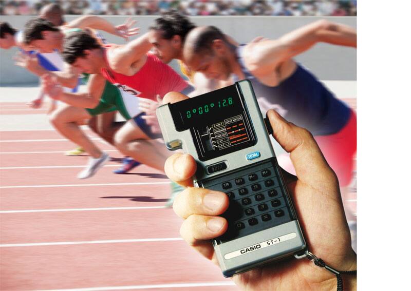 ST-1 是一款包含碼錶功能的計算機。產品外型獨特,側邊有開始/停止按鈕,使用者能輕鬆以大拇指操作。
