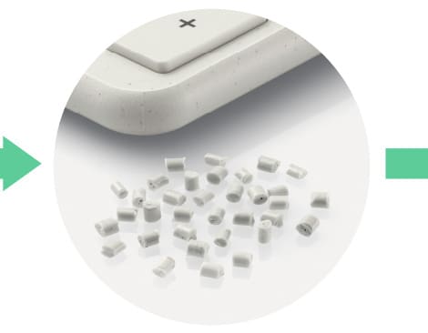 PCR 塑膠是由消費者使用並丟棄之塑膠產品製成的再生回收塑膠。使用 PCR 塑膠有助於減少浪費和原生塑膠的使用,進而降低使用塑膠對環境的影響。