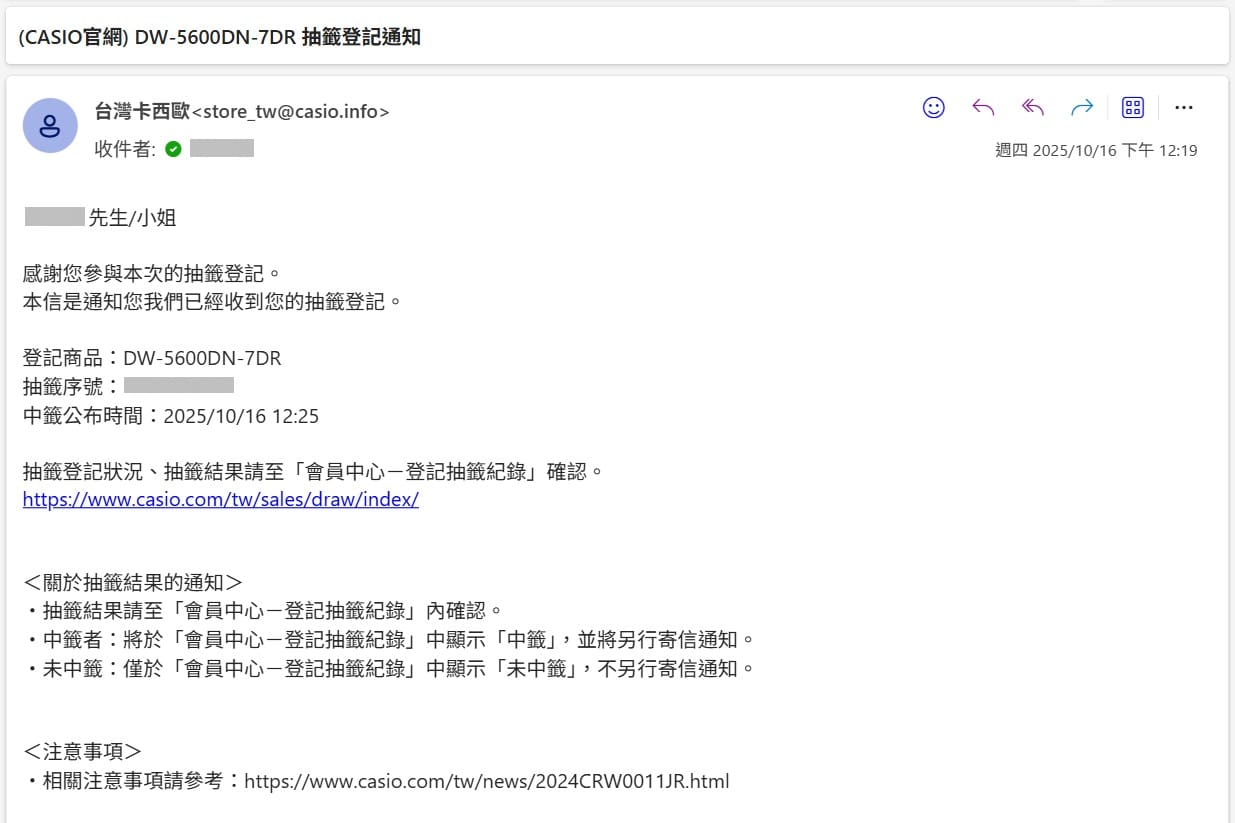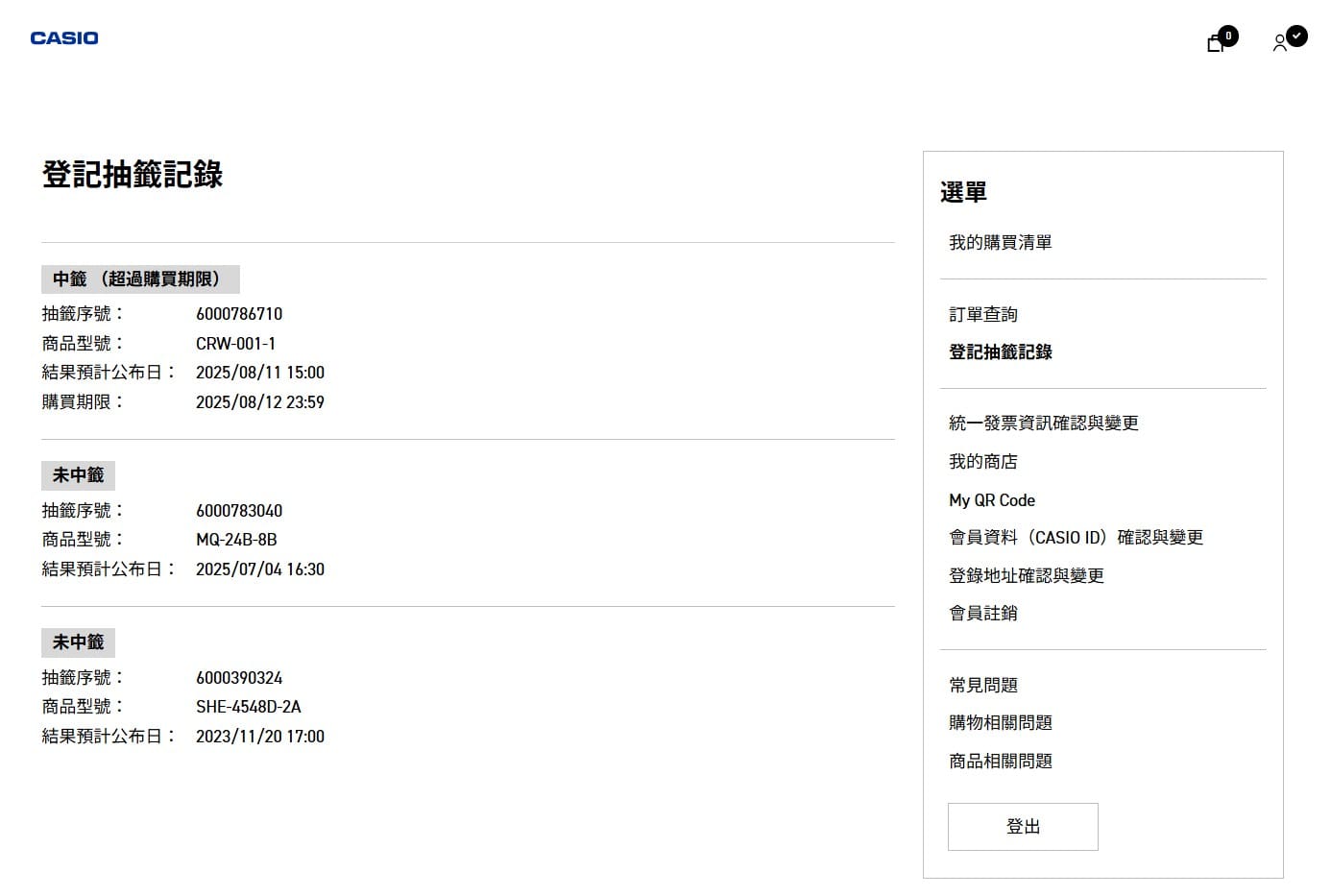 - 抽籤登記需要「CASIO ID」,如果您沒有 CASIO ID,請提前註冊為會員。