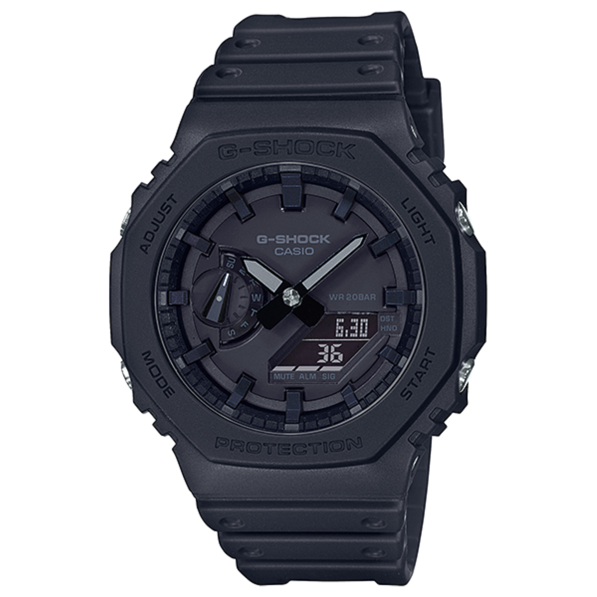 以具備經典八角形錶圈特色的GA-2100為基礎,採用純粹的啞光黑色設計,營造出簡約卻大膽且時尚的外觀。