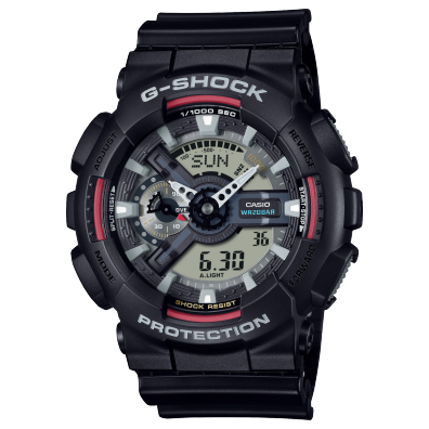 獨特大錶殼的出眾風範。忠實再現原創配色,加入 G-SHOCK 紅色,代表勇於挑戰的熱情;藍色,象徵優異的防水性能;以及黃色,表示強悍的耐衝擊性能。