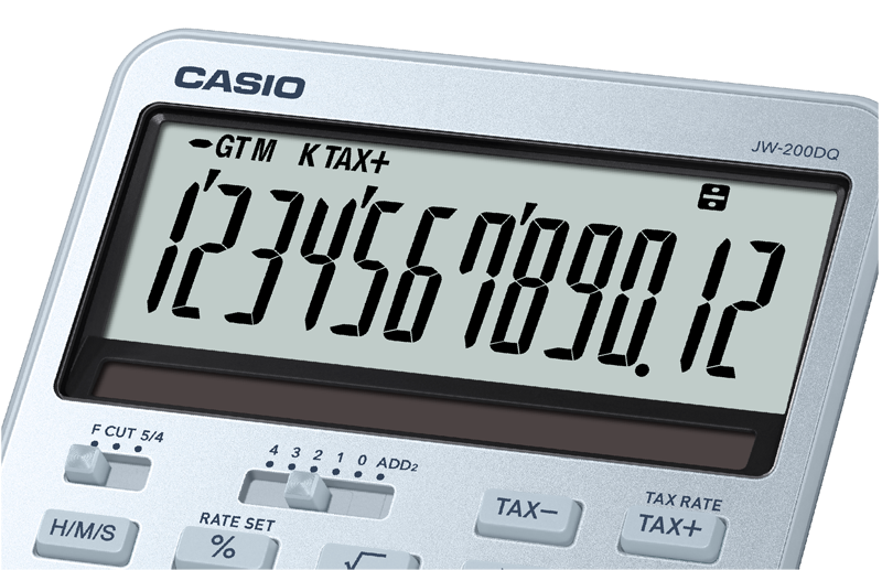 The LCD is slanted to ensure clear legibility, even when the calculator is resting at an angle on a desk.
