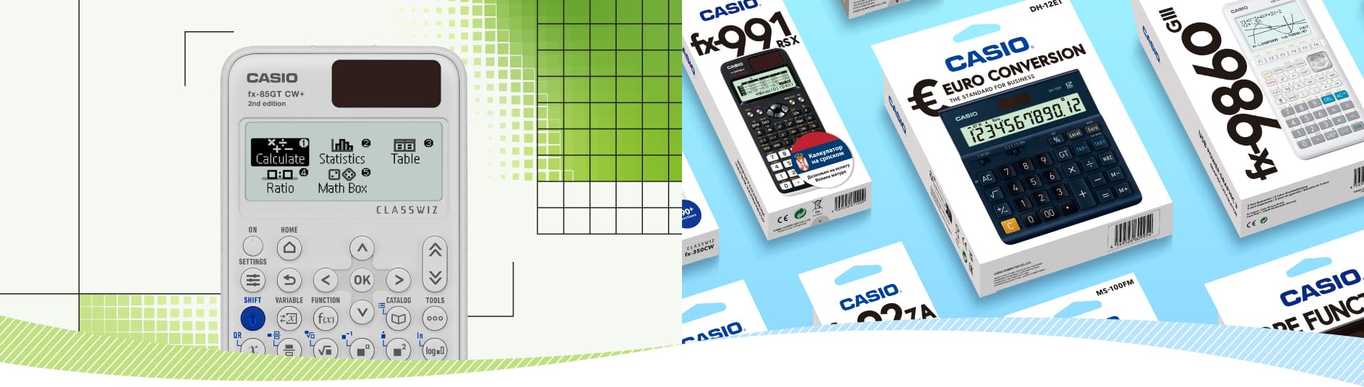 The “Casio Calculator ECO STANDARDS” reflect our past environmental initiatives and future commitments toward environmentally conscious and sustainable product manufacturing. Calculators that meet all of these evaluation criteria are designated as “Casio ECO-friendly Calculators.”