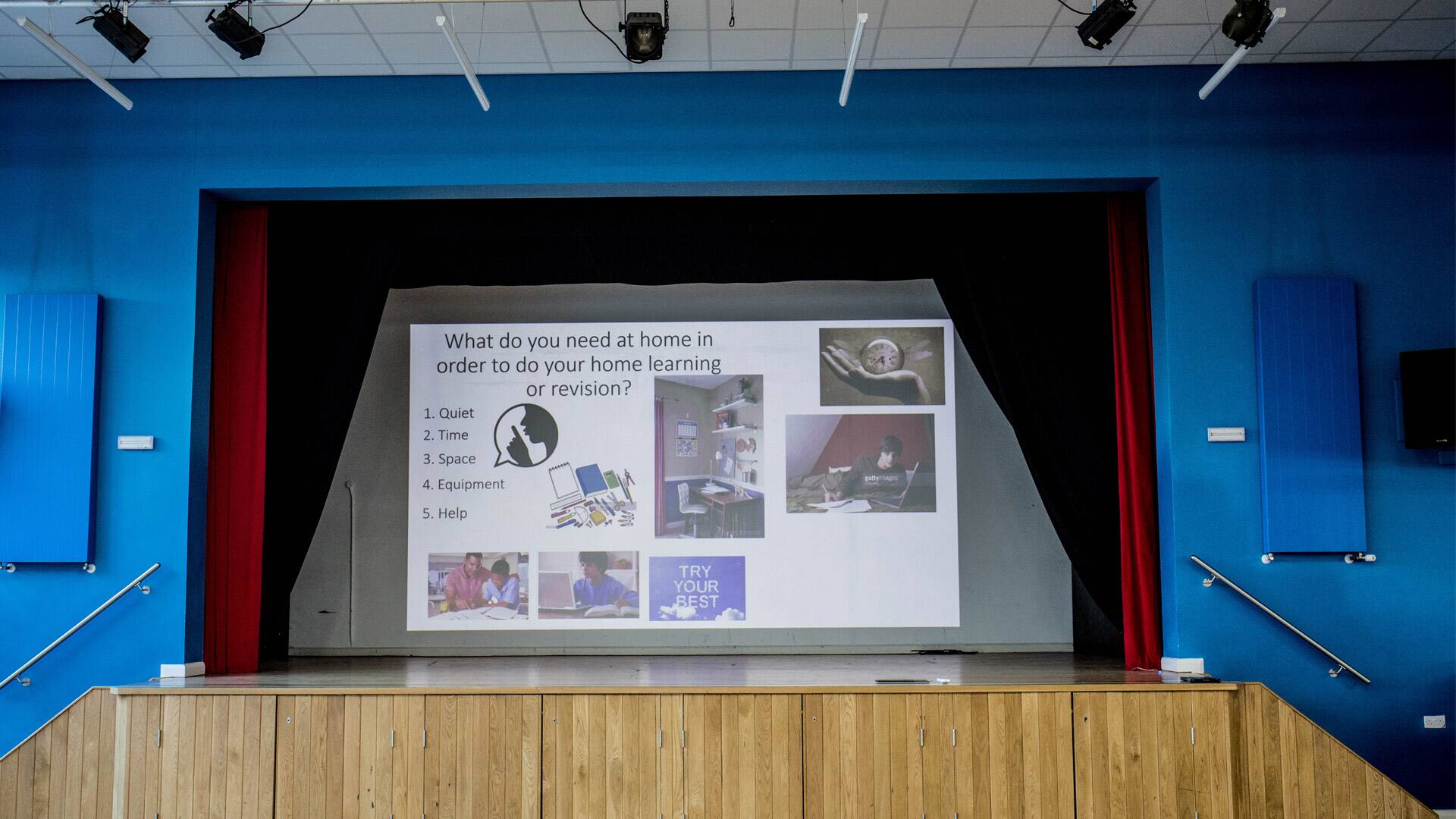 The main assembly hall where the Large Venue Series is located is also used for mock exams. A visualiser has been plugged into the projector enabling teachers to display results and walk pupils through the answers to provide a highly immersive and engaging learning environment.