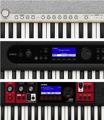 Casio’s state-of-the-art AiX Sound Source technology delivers stunning depth and realism through the complementary design of circuits, mechanical build, software, LSI processors and other components, providing extraordinary sound from a remarkably compact keyboard. Based on in-depth analyses of the audio characteristics of different instruments, AiX Sound Source can accurately reproduce acoustic instruments such as pianos and strings, electric instruments such as electric guitars and organs, and the electronic sounds of synthesizers. Tap into the unique expressiveness of each instrument and let your imagination inspire your performance.