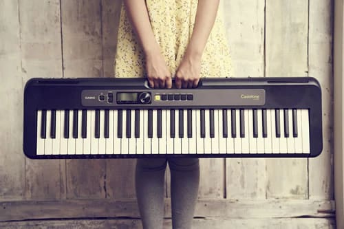 The keys are built in a box shape like a piano. Touch Response delivers piano-like changes in volume and tone depending on the force used to play the keys.