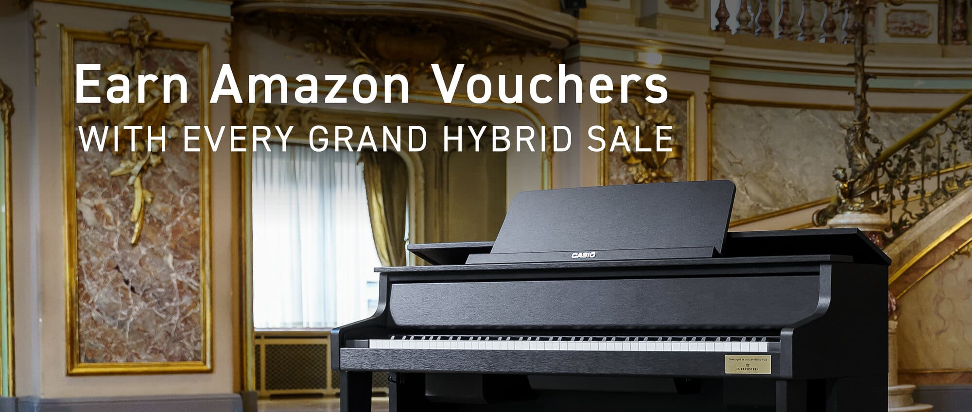 From now until 31st December 2025, you can earn an Amazon voucher every time you sell one of our flagship Grand Hybrid pianos.