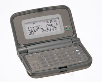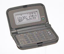 The NICOTO NP-500 brought further innovation to the pager, which was a popular device in the 1990s for receiving messages wirelessly. Until 1994, pagers could only receive numeric messages, specifically, a phone number to call back. The number was input by the sender using a Touch-Tone landline phone, and some users devised a way to send messages using number goroawase (in Japanese, clever pronunciation of a set of numbers can sound similar to a word or phrase: e.g. 0840 = Ohayo or Good Morning). However, this only worked for people who knew how to read them, and it did not work for more complex messages. Addressing this situation, the NICOTO NP-500 was the first pager in the industry to be equipped with a function that could transmit and receive not only numbers but also katakana and alphabetic text. The sender would compose a message on the NP-500, such as “Call the office right away,” and hold the pager to the mouthpiece of the Touch-Tone phone and press a button. Then, the pager would convert and play the message as Touch-Tone signals, so that it could be received and decoded by the destination NP-500. By realizing two-way communication between pagers, the NICOTO NP-500 became a precursor to the text messaging services that arrived with the popular Personal Handy-phone System (PHS) in Japan, and with mobile phones around the world.