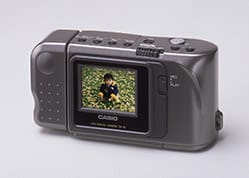The QV-10 was the world’s first consumer digital camera with an LCD screen. With this revolutionary product, Casio created new value for the digital camera. By removing the optical viewfinder and replacing it with an LCD, Casio transformed the digital camera—which at that time still required that photos be printed to be seen—into much more than just an alternative to the conventional film camera. In addition to allowing captured images to be immediately viewed on the LCD, the camera also had a port for outputting the photos to a TV or VCR for viewing or recording. Images could also be transferred to a computer for processing and storage. By enabling the digital camera to be used in a variety of ways that suited the multimedia era, Casio had come up with a new way to enjoy photo-taking. The QV-10 became a hit product, selling 200,000 units in a year. Leading up to the development of the QV-10 was the VS-101 electronic still camera released in 1987. Developed based on the concept of offering a visual communication tool, the VS-101 was designed to expand the enjoyment of photography by allowing people to capture still images, store them on a floppy disk, and play them back as an analog video signal. This enabled the photos to be viewed on a television and enjoyed by many people. Developed using digital technology, the QV-10 inherited this concept, allowing it to pioneer the digital camera market.