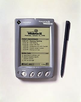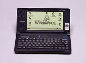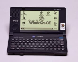 The CASSIOPEIA A-10 and A-11 were the first handheld PCs that Casio jointly developed with Microsoft and released in North America. The handheld PC was a portable information device standardized by Microsoft. In line with the personal computer era that took off with the arrival of Windows 95 in 1995, Casio developed CASSIOPEIA using Windows CE. The concept behind the product development was portable information. This idea had already existed in various Casio products. For example, the electronic organizer PF-3000 released in 1983 could store information such as telephone numbers and alphabetic text. In 1987, Casio released the electronic organizer DK-1000 capable of handling kanji characters. The Databank CD-40 wristwatch, released in 1984, was equipped with a feature that could store 10 telephone numbers. Casio was already working to advance the watch as an information device on the wrist. In 1993, the Z-7000 personal digital assistant (PDA) was launched. These were the developments that led up to the CASSIOPEIA.
