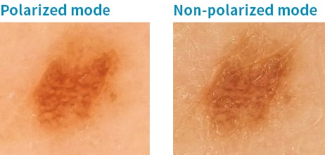 A pocket-size compact body with a large-diameter lens equipped with high-brightness LED. You can switch between polarized and non-polarized with one touch. You can more easily perform magnified observation of the lesion.