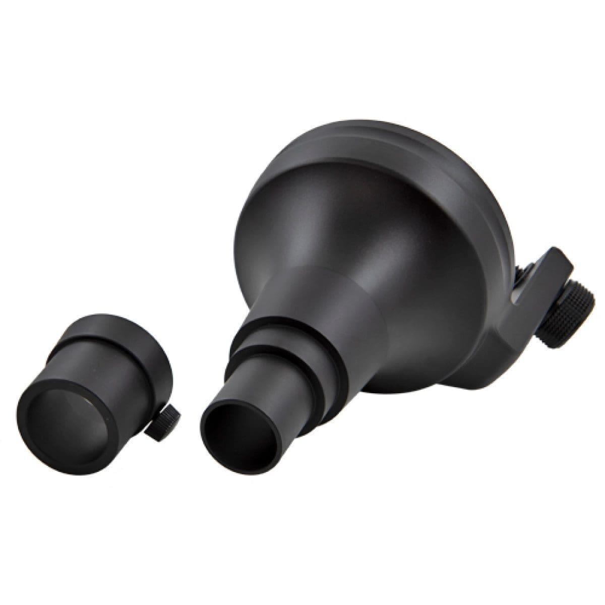 This adapter makes it possible to mount DERMOCAMERA to the eyepiece of a microscope. It can be mounted to eyepieces with an inner diameter of either 23.2mm or 30.0mm. The user can take pathological images observed through a microscope and can also use an HDMI cable to display images on an external monitor.