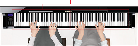 Có thể đặt các phím ở bên trái và phải so với điểm giữa bàn phím về một dải âm sắc giống nhau. Chế độ Song tấu thuận tiện khi có hai người cùng tập đàn, ví dụ như cha mẹ và con cái hoặc giáo viên và học viên.