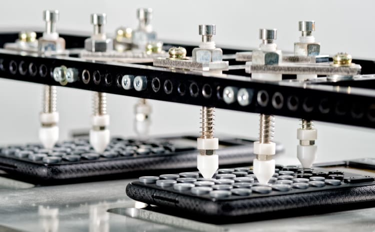 In this test, a machine is used to press the keys repeatedly to check the durability of the keys during repetitive operations.