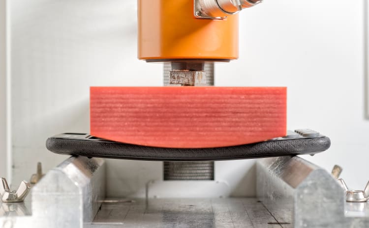 In this test, both ends of the calculator are secured, and pressure is applied to the central portion of the device to test its durability.
