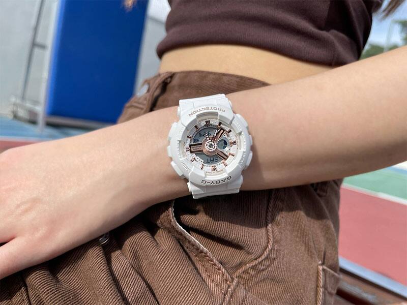 After mixing and matching, I decided to style this white BABY-G watch in a Y2K style, which is a style that is currently trending on social media. Being a fan of BABY-G who owned a black-gold BABY-G watch of the same design years ago, in my opinion, this BABY-G watch looks the best in a sporty style, hence I decided to do my photo shooting on a basketball court, with a basketball and mini colourful hair clips to enhance my photo and overall look. White and rose gold have been one of my favourite colours and I can’t wait to do more styling with my favourite white BABY-G watch in the future!